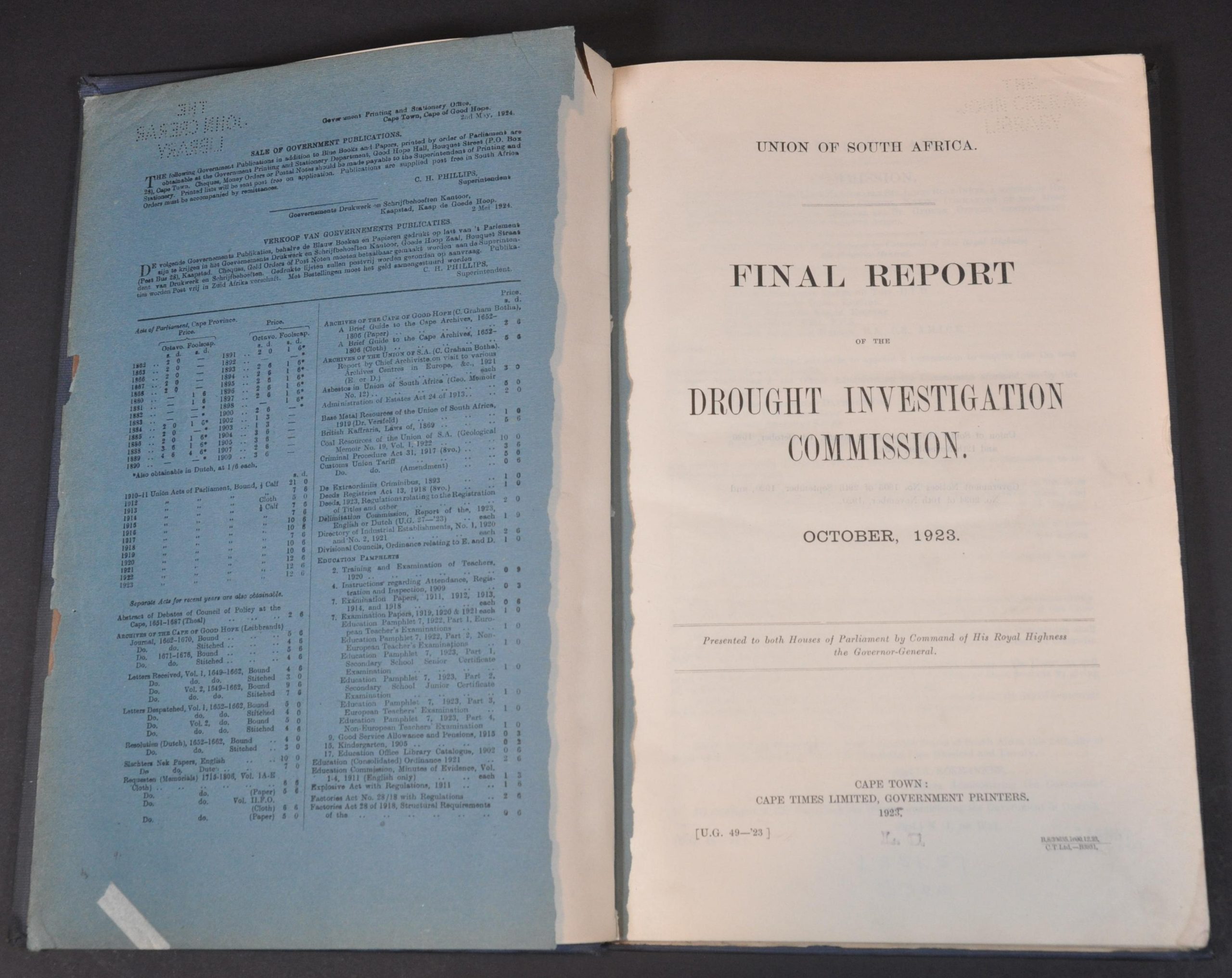 Union of South Africa Final Report of the Drought Investigation Commission October, 1923